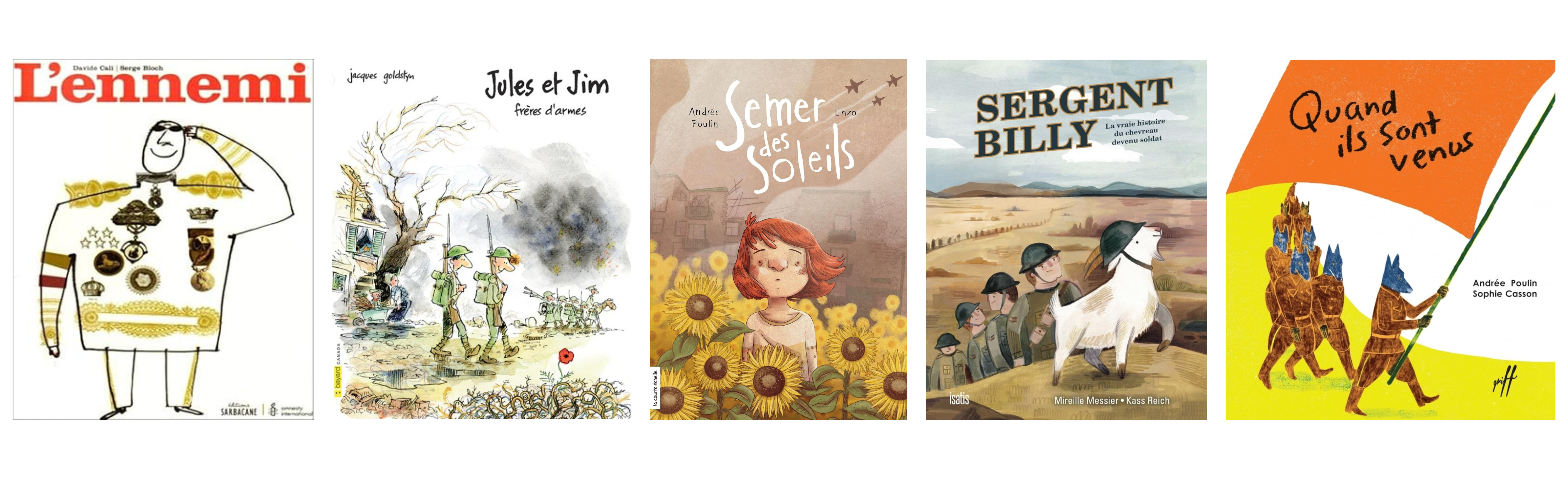 - Sergent Billy – Mireille Messier et Kass Reich : inspiré d’une histoire vraie, celle d’une chèvre mascotte d’un bataillon canadien pendant la Première Guerre mondiale.